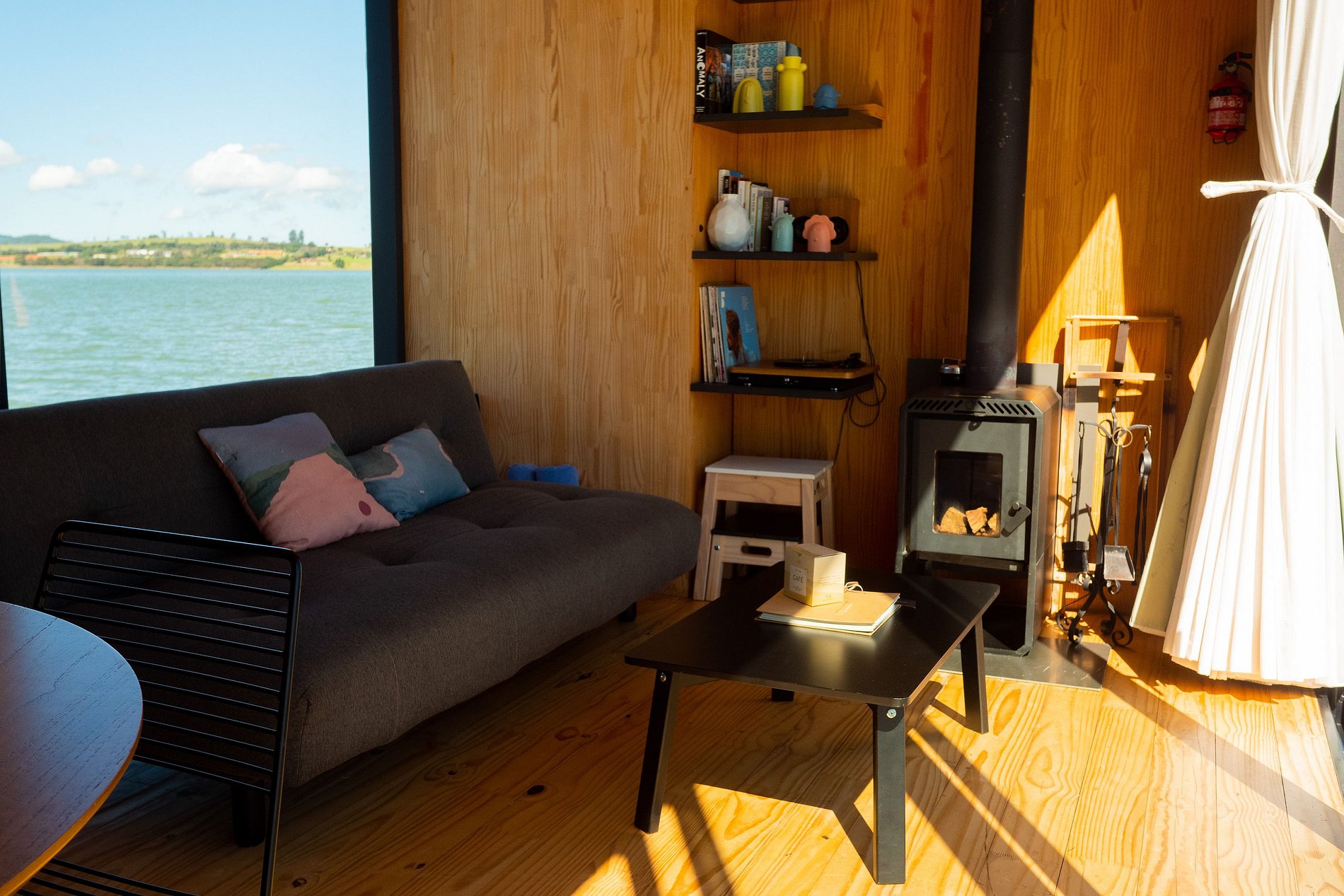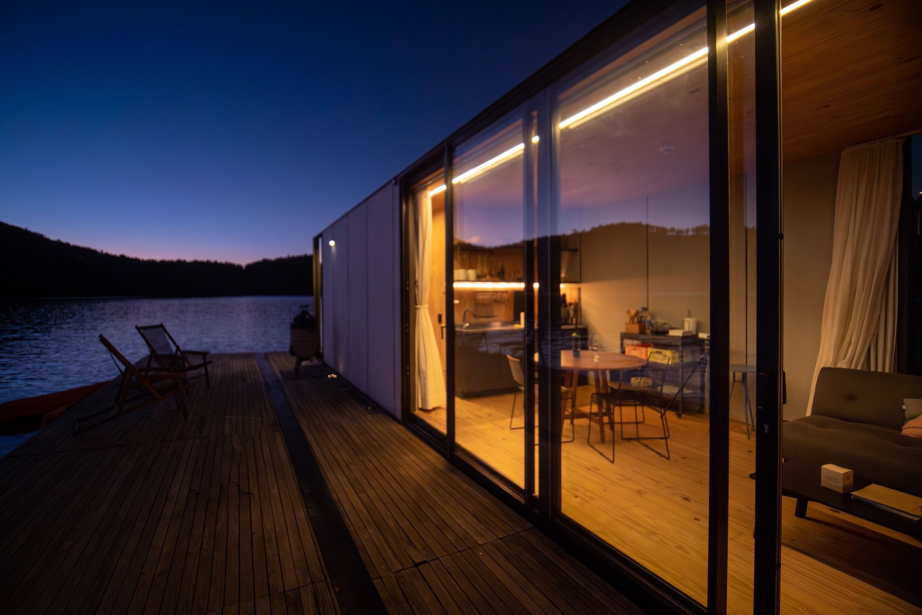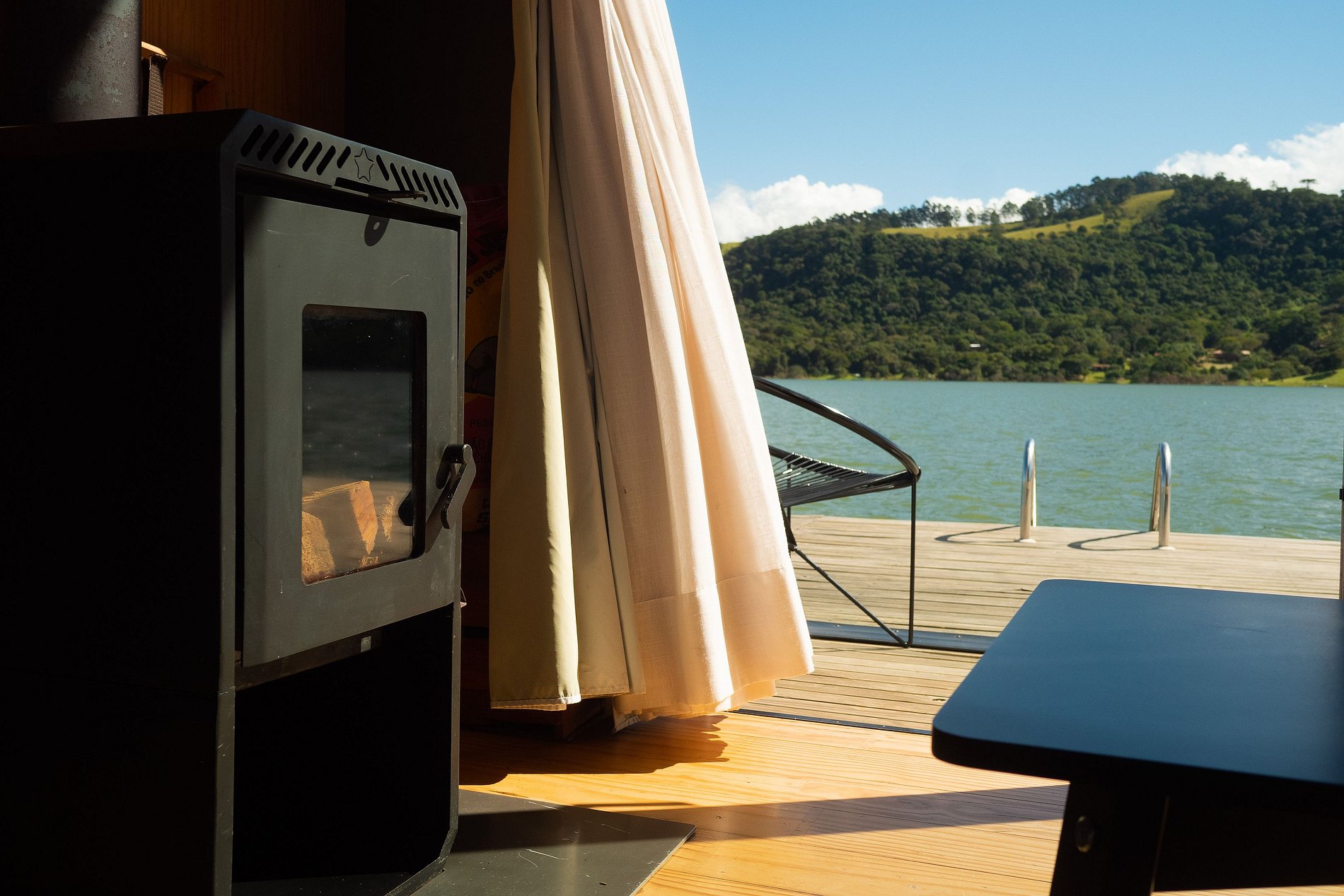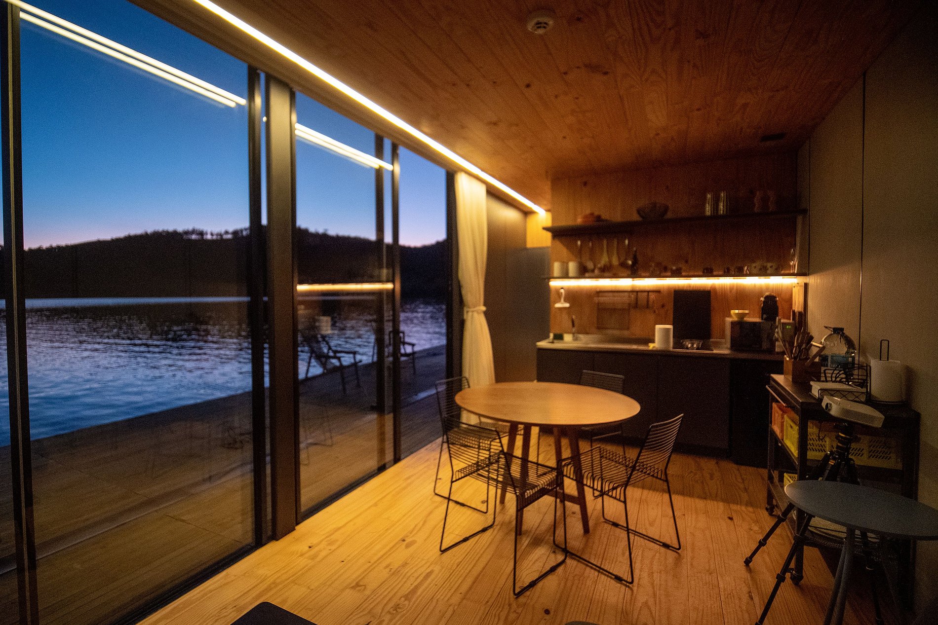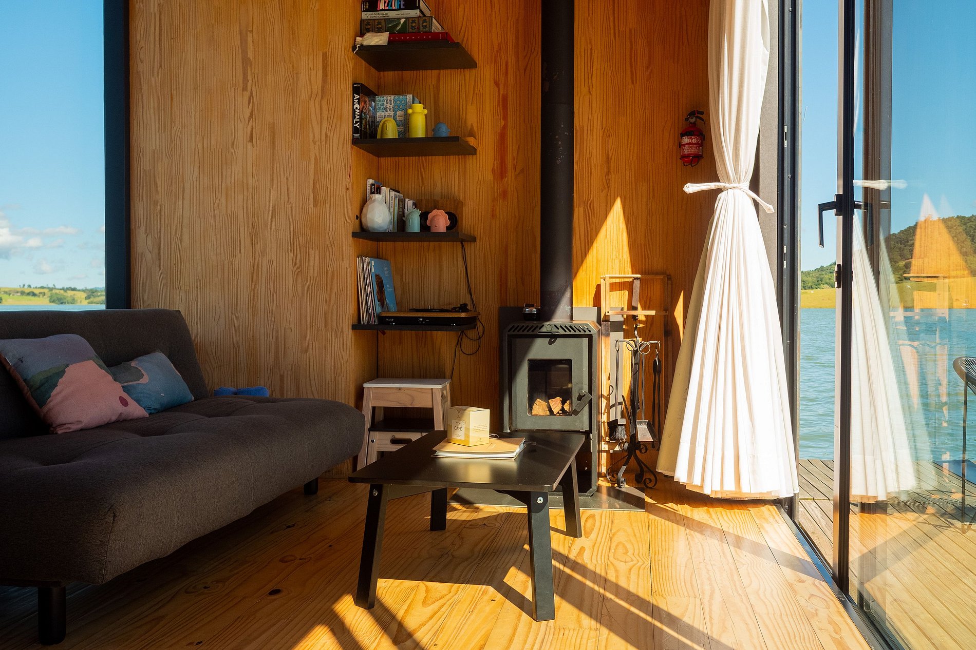 O flutuante #1 possui tudo que você precisa para desfrutar desse lugar incrível. Uma cozinha totalmente equipada permite que você prepare refeições com vista para a represa, enquanto que a cama queen garante uma confortável noite de sono. Na casa, você ainda pode desfrutar de uma sessão de cinema exclusiva com o projetor Nebula enquanto se aquece com