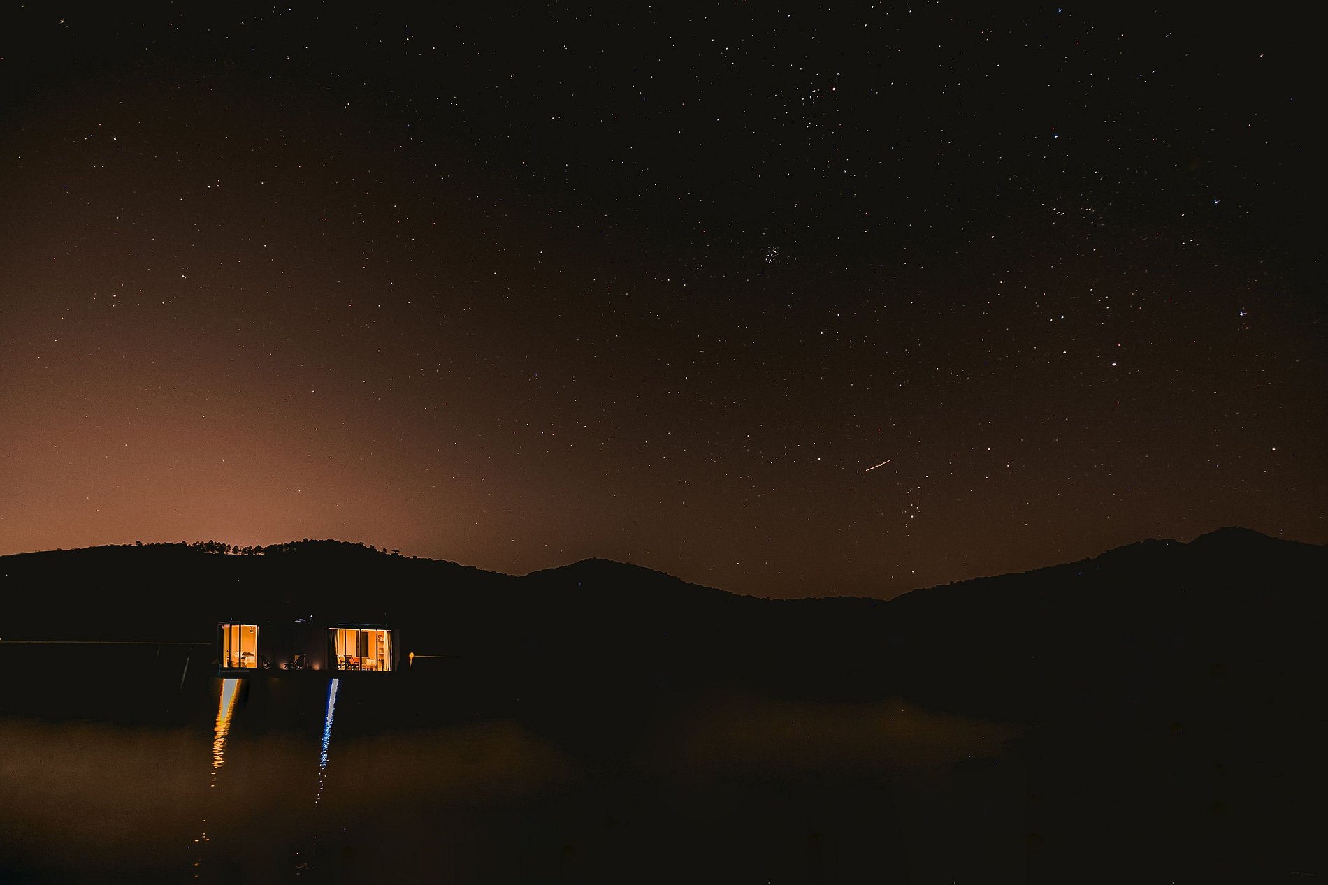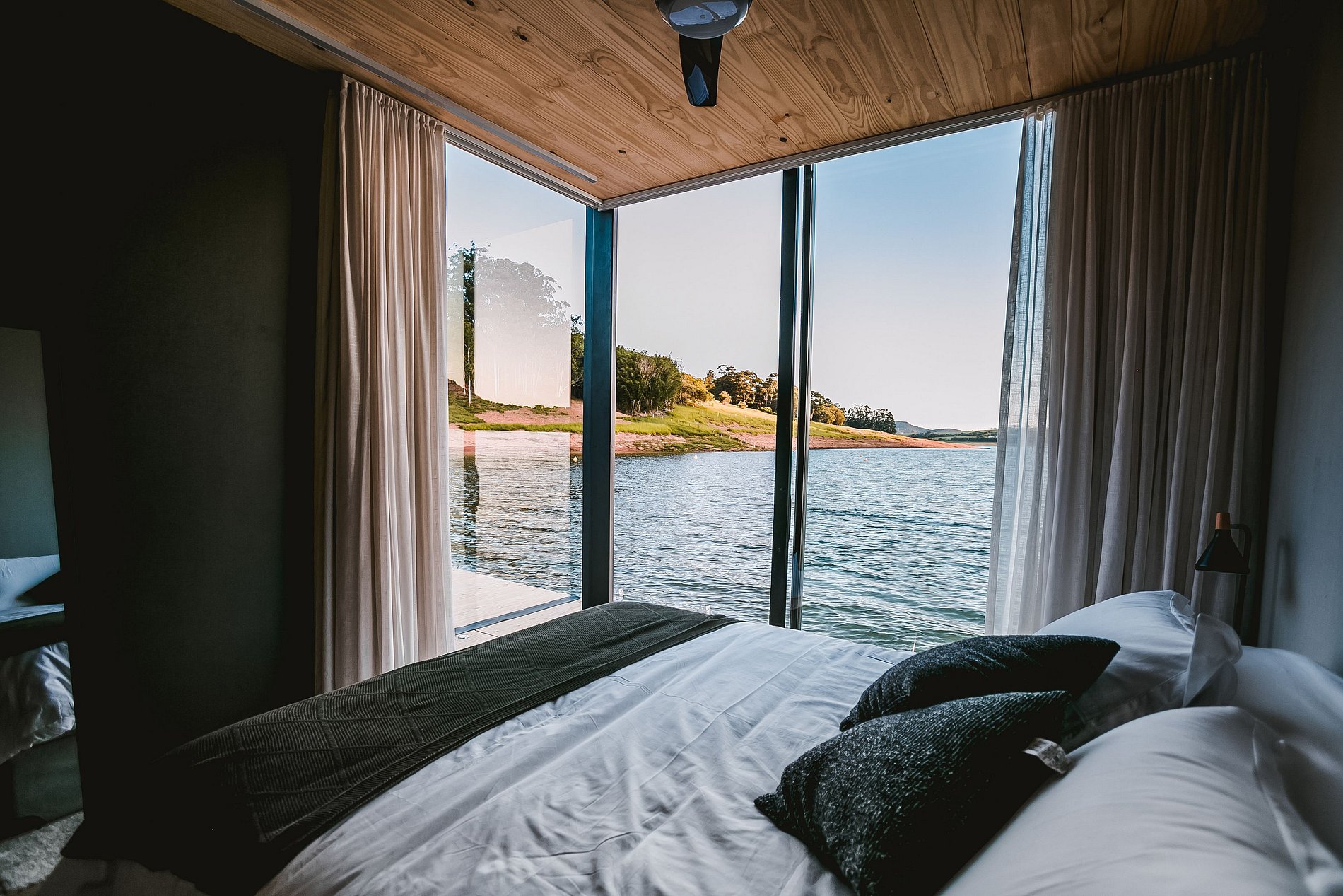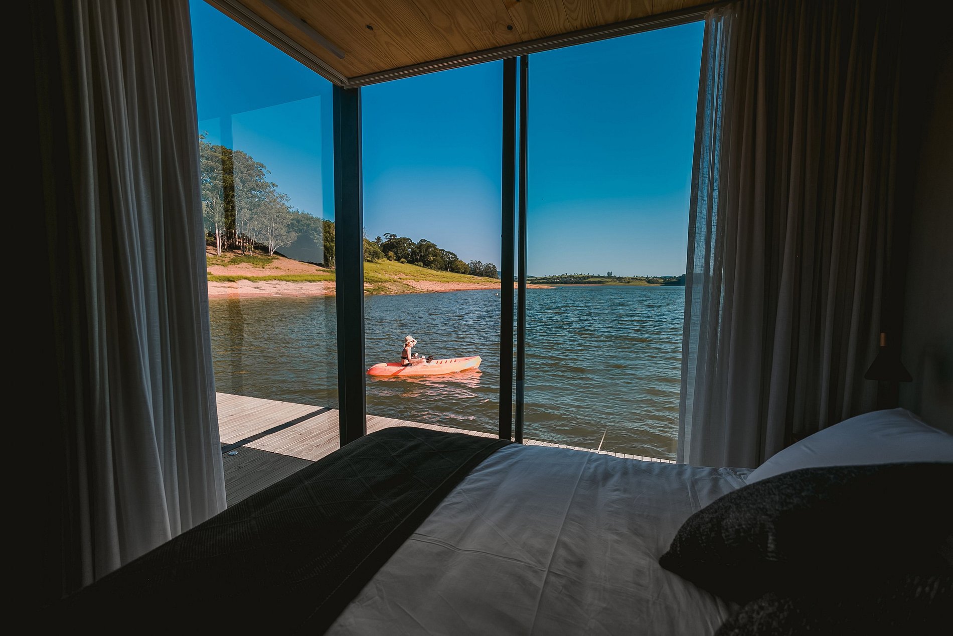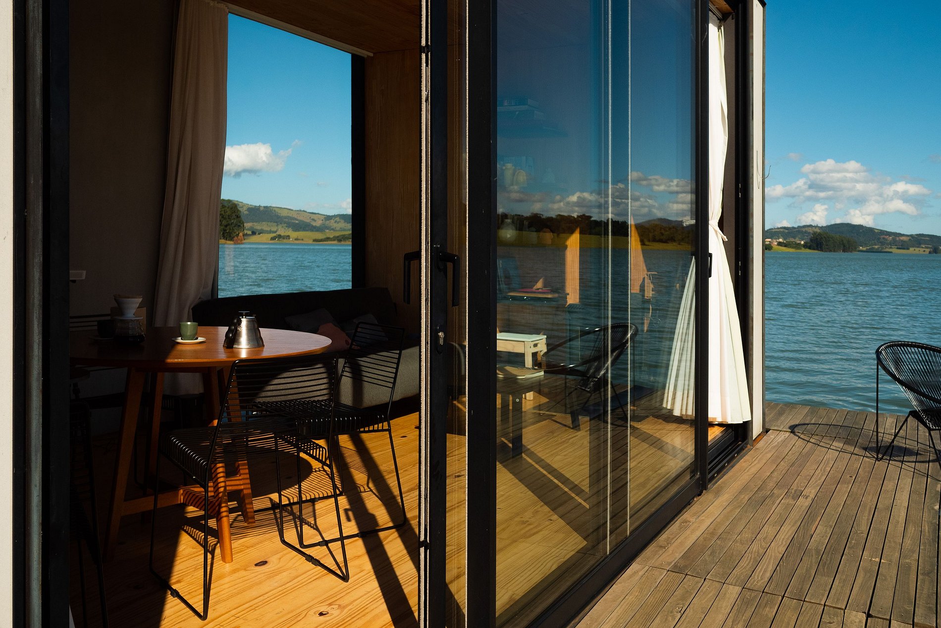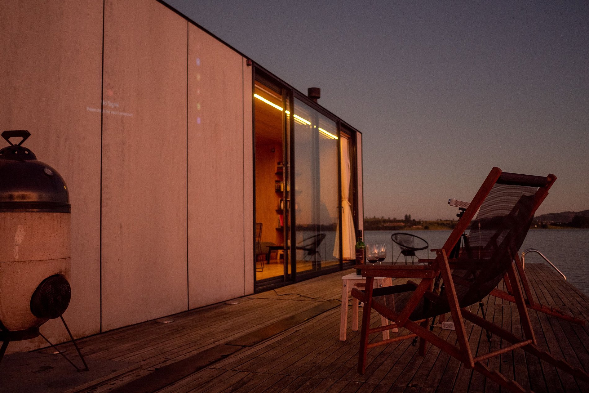 O flutuante #1 possui tudo que você precisa para desfrutar desse lugar incrível. Uma cozinha totalmente equipada permite que você prepare refeições com vista para a represa, enquanto que a cama queen garante uma confortável noite de sono. Na casa, você ainda pode desfrutar de uma sessão de cinema exclusiva com o projetor Nebula enquanto se aquece com