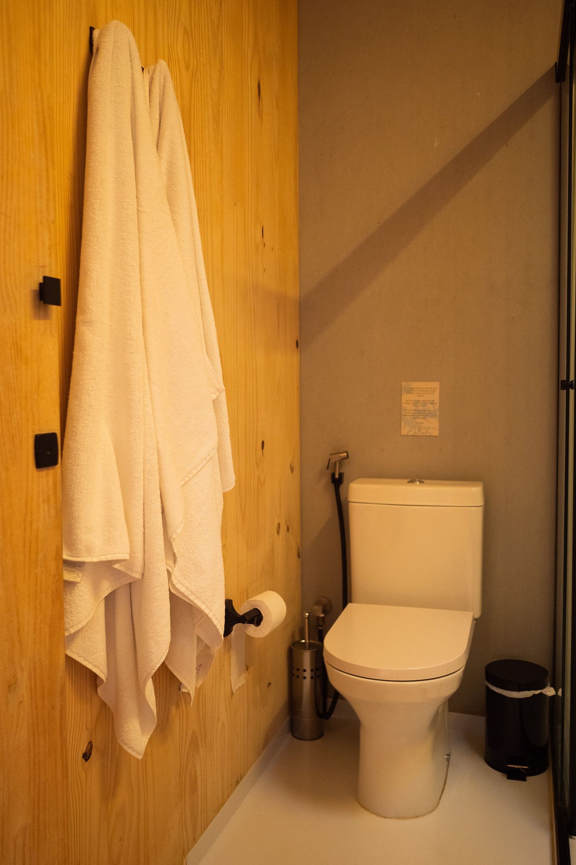 O conforto termo acústico se dá através do revestimento especial das paredes da casa. Toda madeira usada é de reflorestamento.
