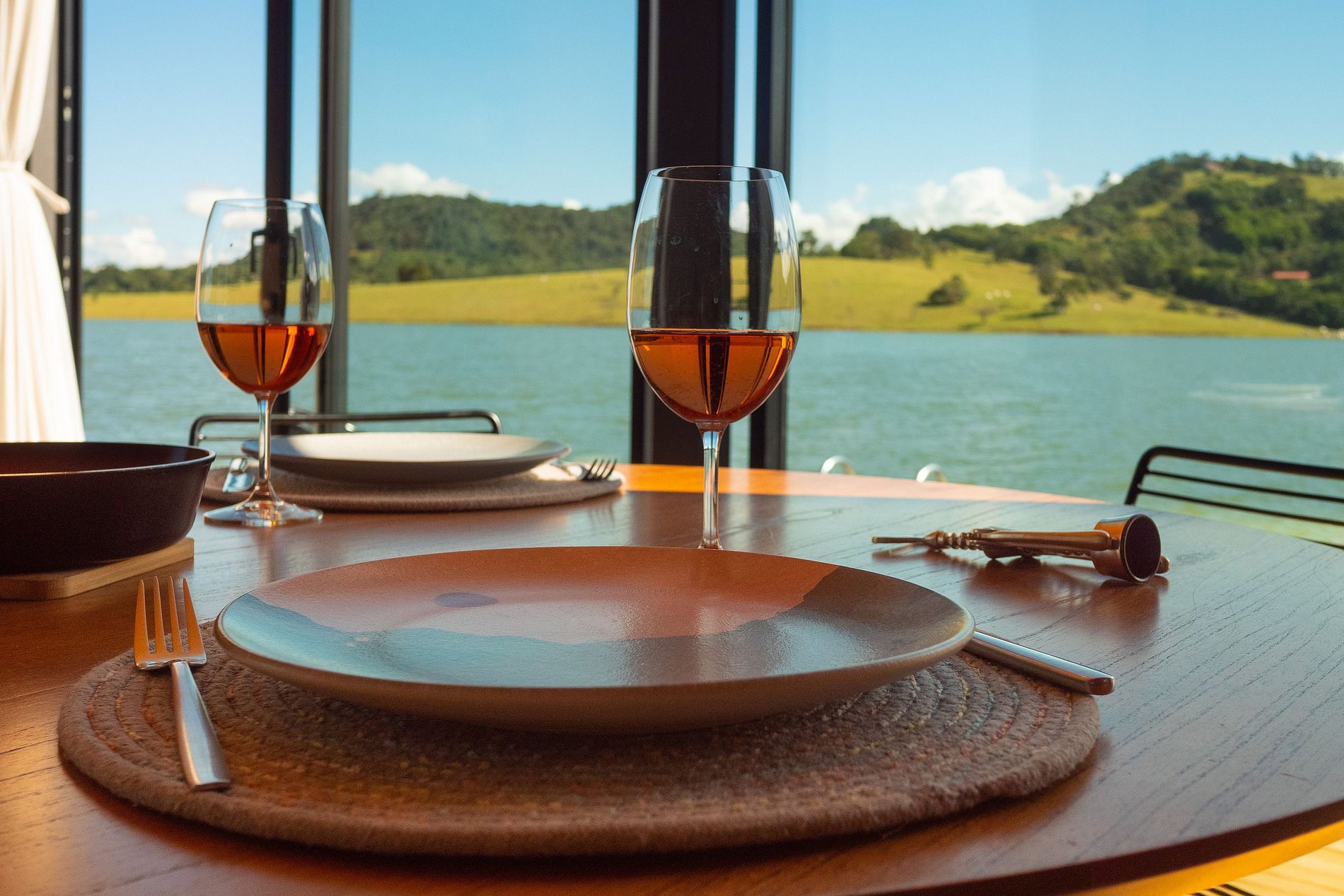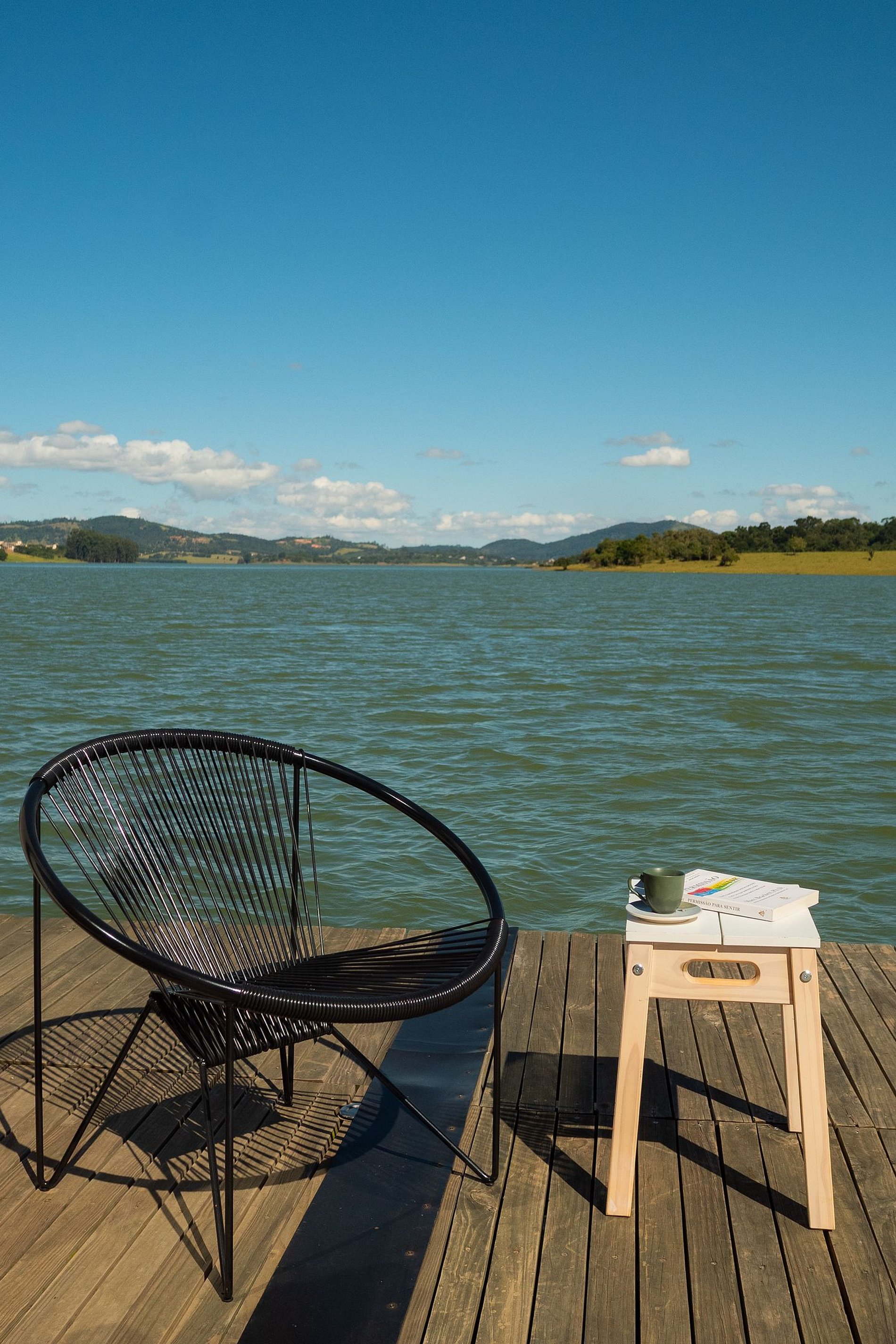No exterior, além da represa ao seu redor, você ainda possui um deck privativo com churrasqueira Noori, guarda-sol e espreguiçadeiras. Vitrola com vinis permitem que você complemente o som ambiente com música de qualidade.