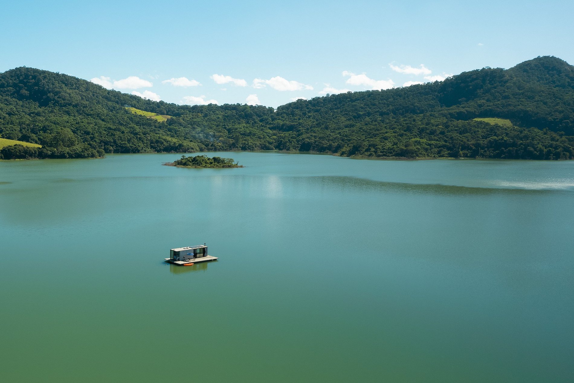 Localizado na Represa de Joanópolis, um lugar encantado à cerca de 2h de São Paulo, o Altar Flutuante #1 foi a nossa primeira casa. Casa, mas pode chamar de barco. Afinal, esse projeto naval não fica perto ou ao redor da represa, mas no centro dela.