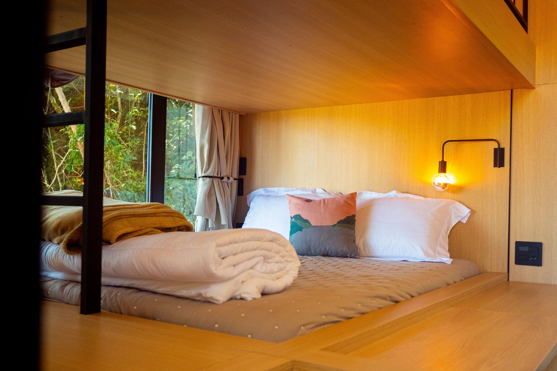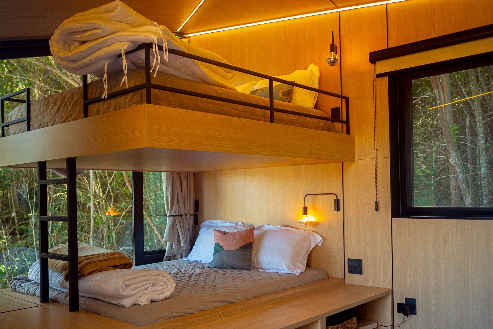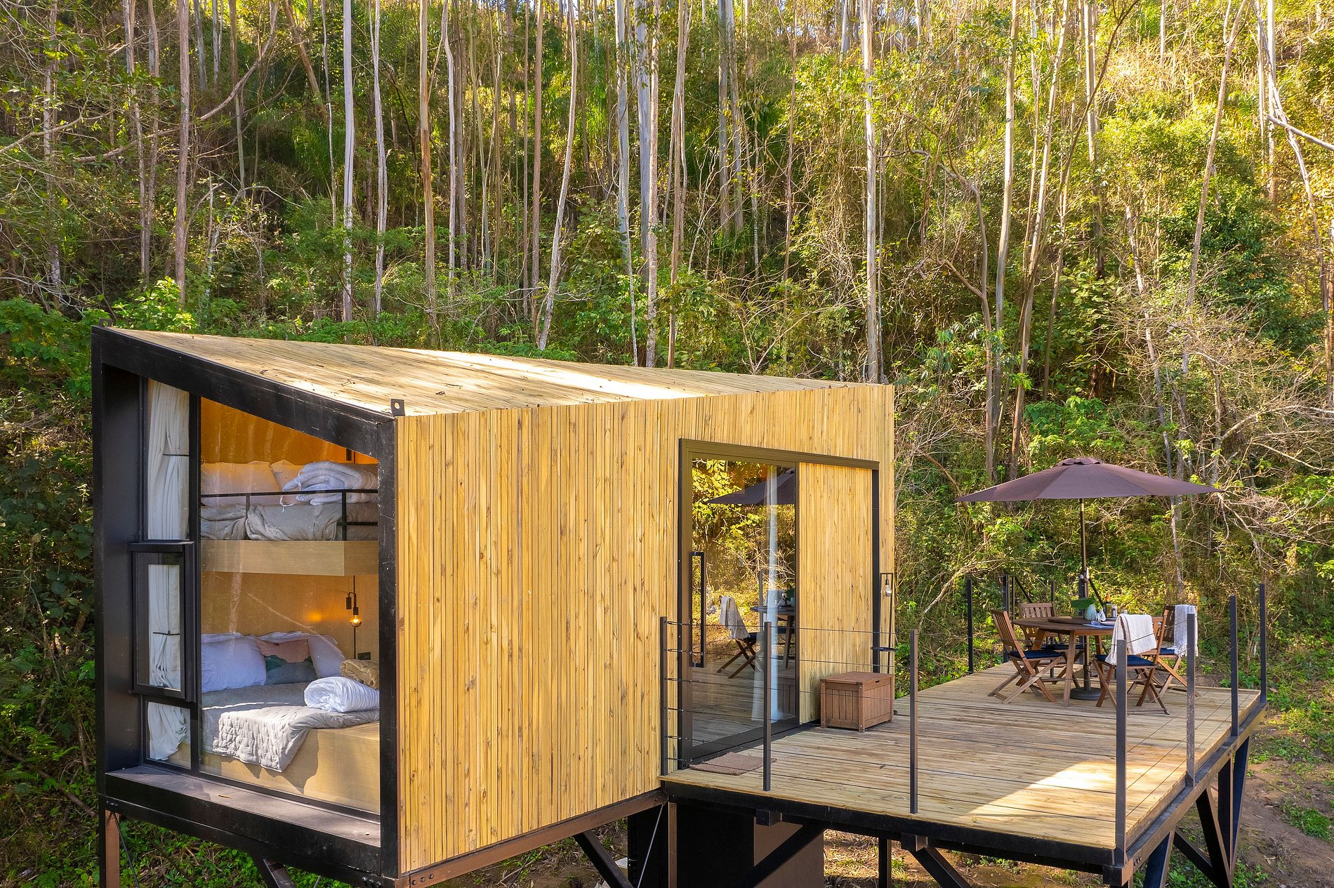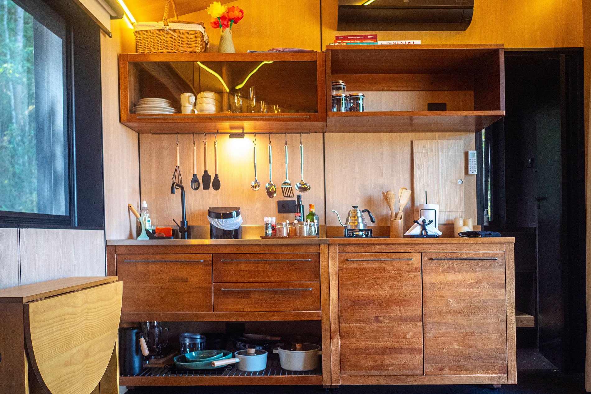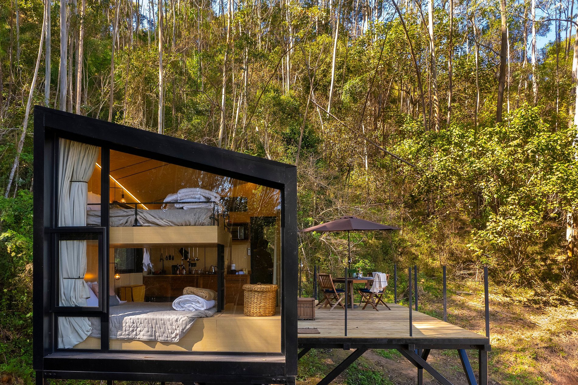 Uma tiny house com espaço o suficiente para se tornar um refúgio em meio à natureza.